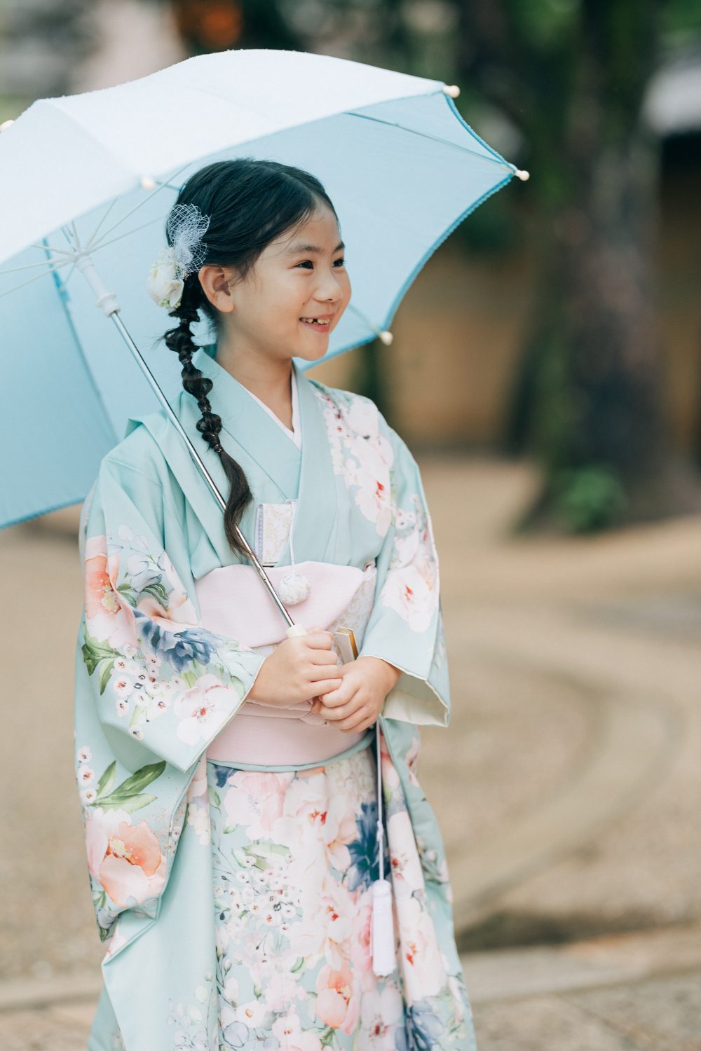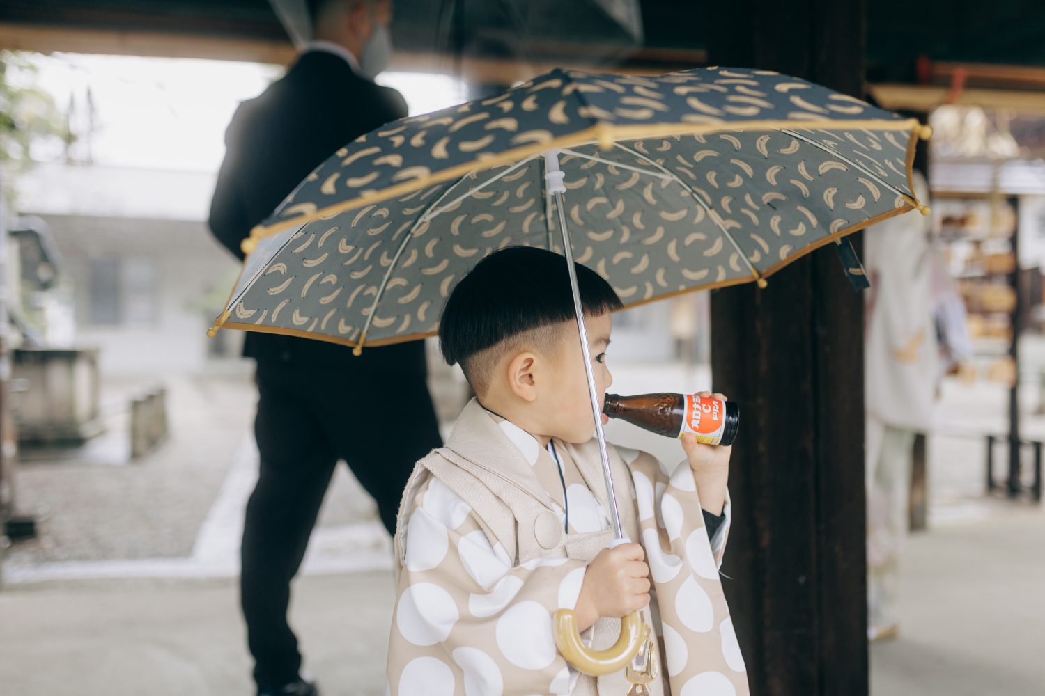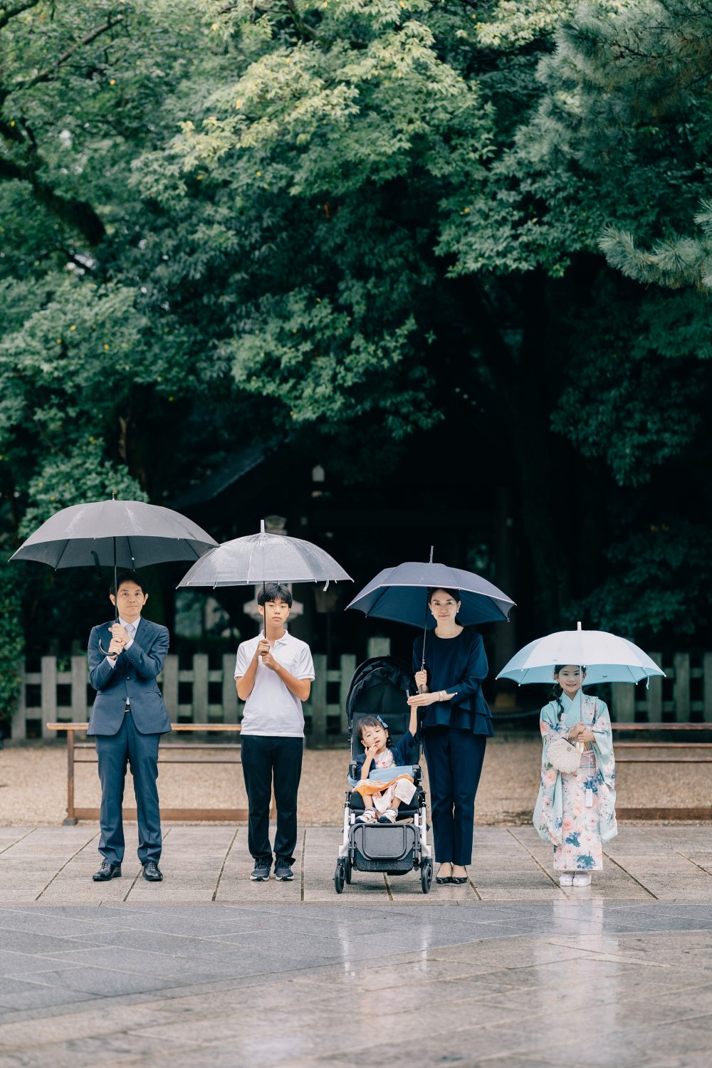 数年後、写真を見返したときには「あ〜そいえば七五三、雨で大変だったよね!」なんて笑い話になっていることを願いつつ、家族みんな傘をさした写真をリクエストさせていただきました。