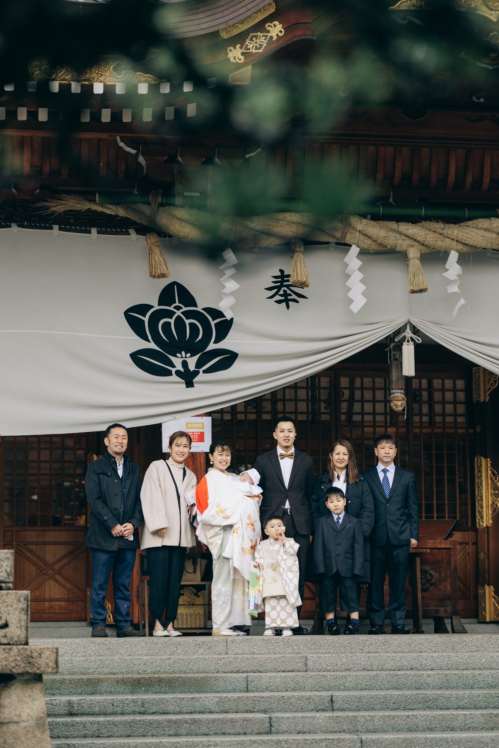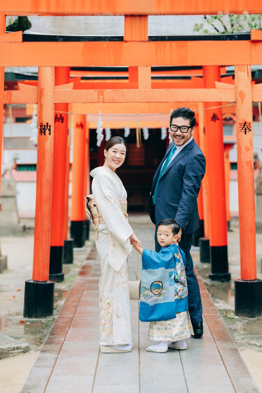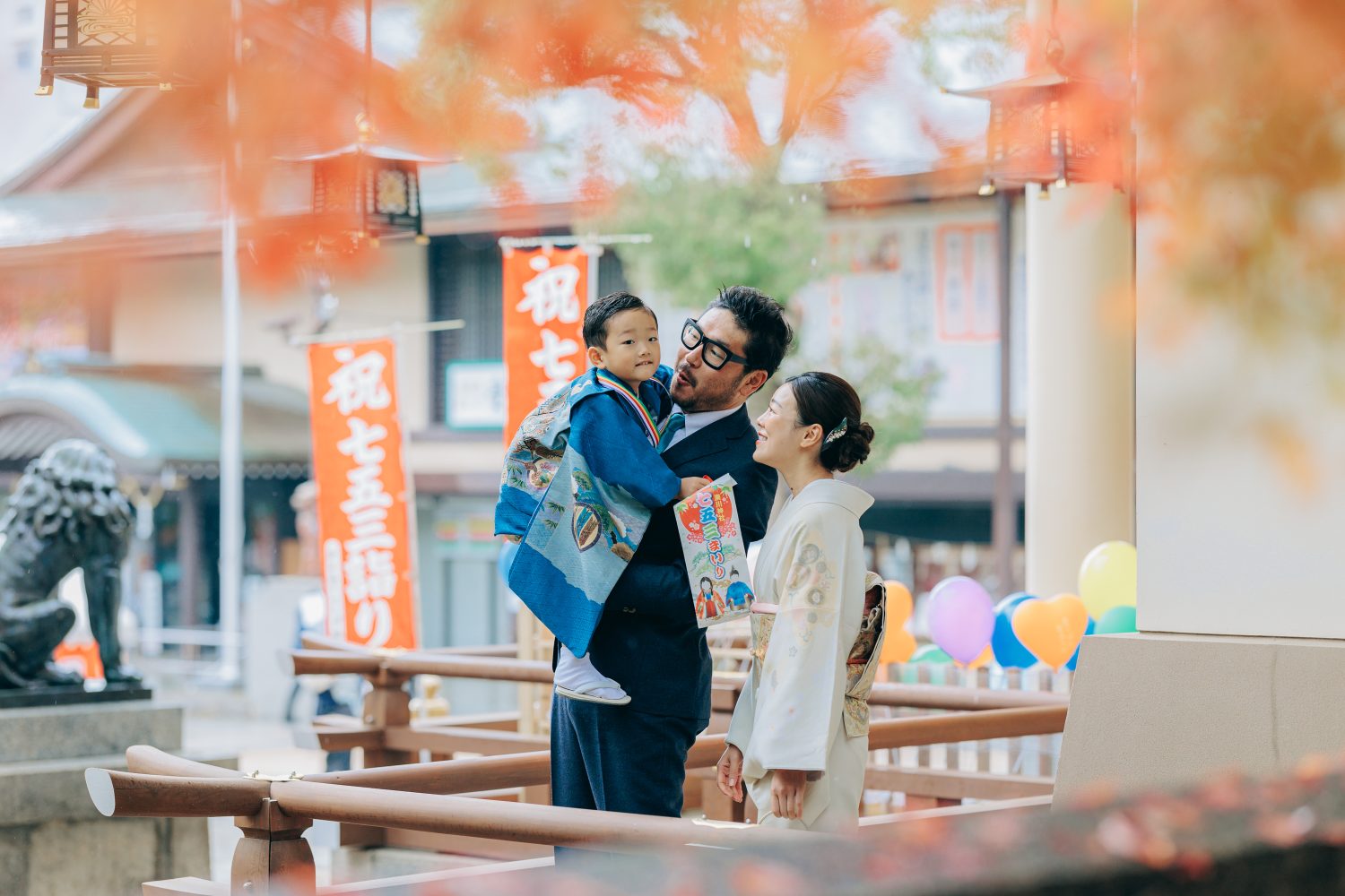 数年後、写真を見返したときには「あ〜そいえば七五三、雨で大変だったよね!」なんて笑い話になっていることを願いつつ、家族みんな傘をさした写真をリクエストさせていただきました。