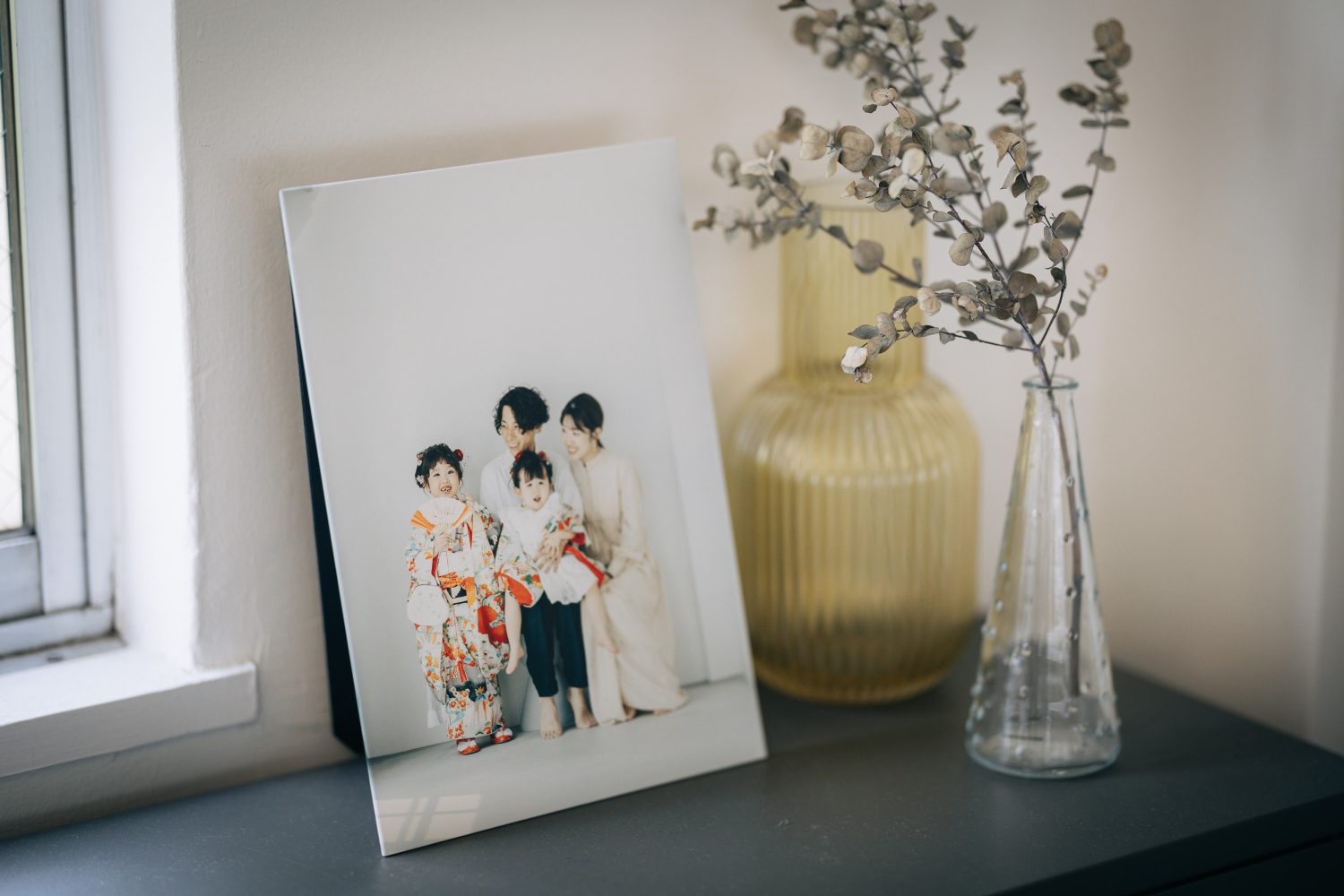 部屋に飾っておくことで、自然と子どもたちもその写真を目にする機会が増え、家族みんなで思い出を共有できる。写真がただの記録ではなく、大切な家族の絆を深める存在になっているのです。今回ご用意させてもらったのはフォトアルバムとパネルの2点になります。